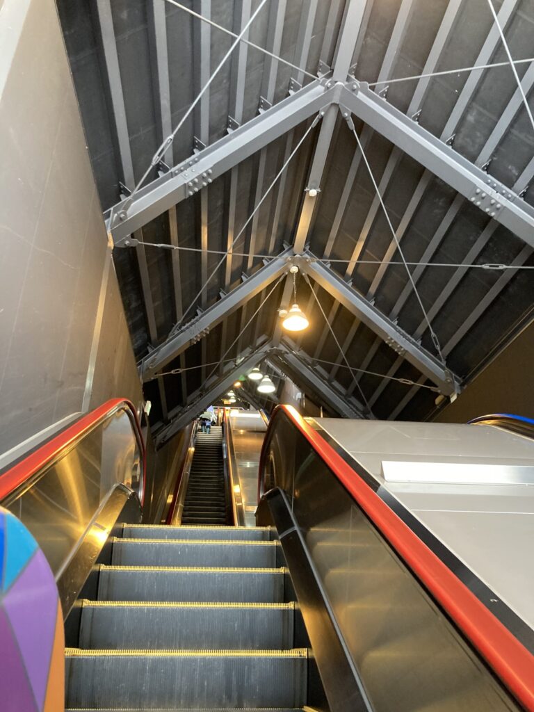 駐車場から長いエスカレーターで上っていくとセンターハウス。