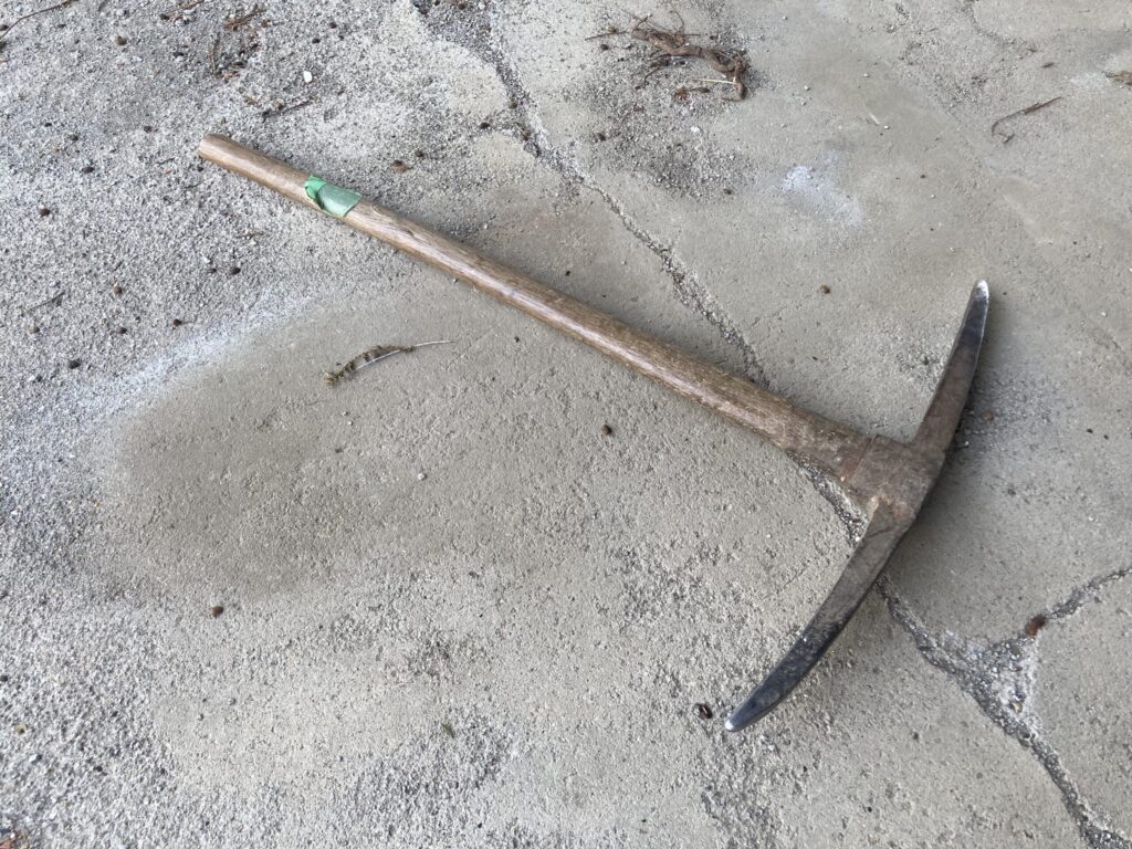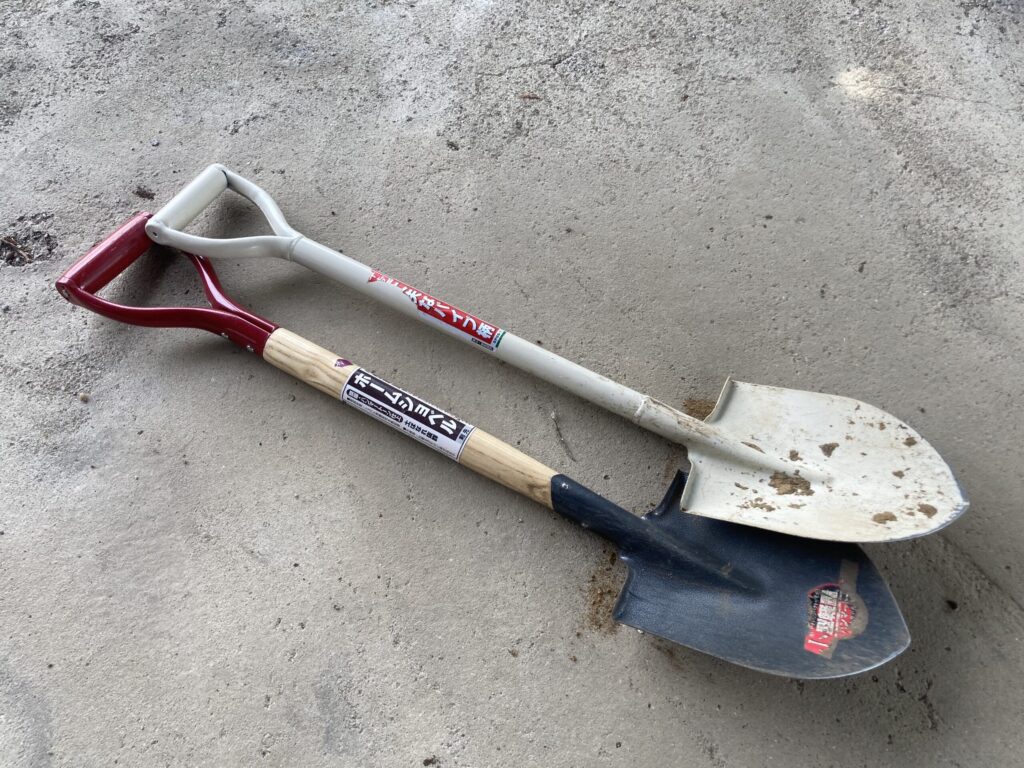 根っこの下側とかを掘るときなど、スコップ(大)では届かないところで使います。